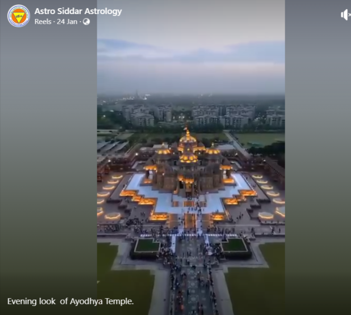 পোষ্টটোত লিখা আছে, “অযোধ্যাৰ মন্দিৰৰ বিয়লিৰ দৃশ্য।”