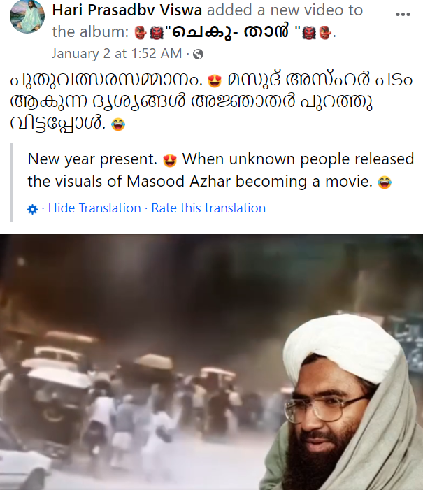 ফেছবুকত ভিডিওটো শ্বেয়াৰ কৰি কেপচনত লিখা হৈছে: “#Newyeargift (নৱবৰ্ষৰ উপহাৰ) অচিনাকি ব্যক্তিয়ে মাছুদ আজাহাৰৰ ভিডিও প্ৰচাৰ কৰিছে।