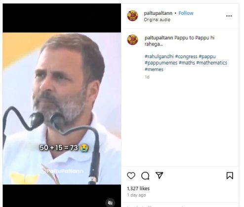 এজন লোকে ইনষ্টেগ্ৰামত ভিডিওটো প্ৰচাৰ কৰি কেপচনত লিখিছে : পাপ্পুতো পাপ্পু হী ৰহেগা…#ৰাহুলগান্ধী #কংগ্ৰেছ #পাপ্পু #পাপ্পুমীমছ#গণিত #অংক #মীমছ