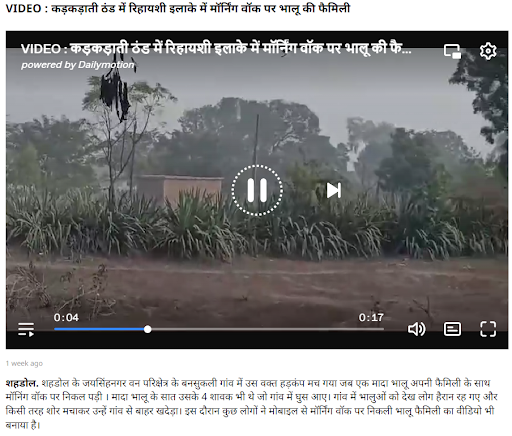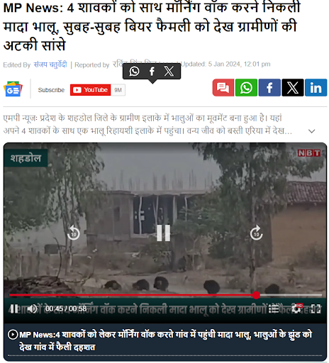 ভিডিও কিফ্রেমের রিভার্স ইমেজ সার্চ চালিয়ে এনএম টিম ৫ জানুয়ারি, ২০২৪ তারিখের নবভারত টাইমস–এ একটি শিরোনাম সহ একটি সংবাদ প্রতিবেদন খুঁজে পেয়েছে: এমপি নিউজ: 4 शावकों को साथ मॉर्निंग वॉक करने निकली मादा भालू, सुबह-सुबह बियर फैमली को देख ग्रामीणों की अटकी सांसे (একটি স্ত্রী ভাল্লুক ৪টি শাবক নিয়ে মর্নিং ওয়াক করতে বেরিয়েছিল, সকালে ভালুকের পরিবারকে দেখে গ্রামবাসীদের শ্বাস বন্ধ হয়ে গিয়েছিল।) নিবন্ধের ভিডিও ভাইরাল ক্লিপের সঙ্গে হুবহু মিলে যায়। ঘটনাটি ঘটেছিল মধ্যপ্রদেশের শাহদোল জেলার একটি গ্রামে।